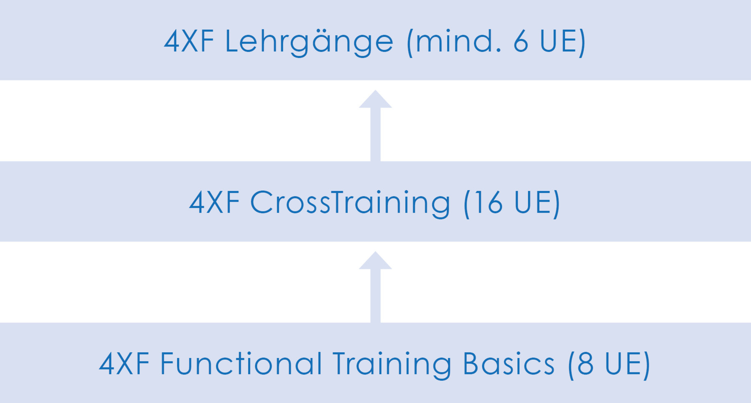 Das Zertifikat „BTV-Kursleiter 4XF FITNESS“ wird nach Absolvieren des Grundlagenmoduls „Functional Training Basics (8 UE)“, der darauf aufbauenden Fortbildung „CrossTraining (16 UE)“ sowie der anschließenden Teilnahme an verschiedenen 4XF Lehrgängen (mind. 6 UE) erteilt. Insgesamt müssen mind. 30 UE (inkl. Grundlagenmodul) erreicht werden.