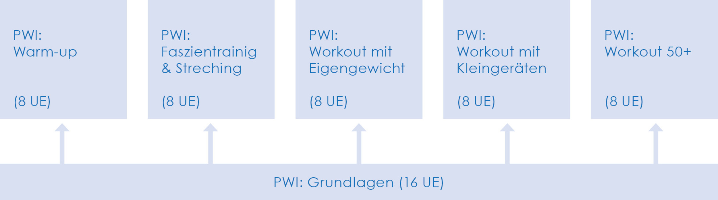 Zum Erwerb des Zertifikates „Professional Workout Instructor“ müssen inkl. Grundlagenmodul mind. 30 UE absolviert werden. So kannst du deinen Kursteilnehmenden ein optimales, ganzheitliches Trainingsprogramm bieten.