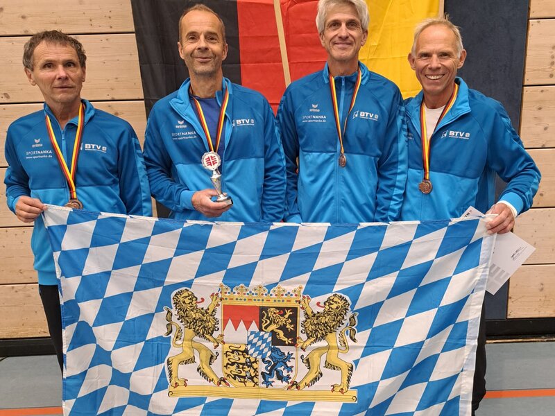 Genauso erfolgreich präsentierte sich das AK-60+-Team: Auch hier konnte verletzungsbedingt nur eine Rumpfmannschaft antreten. Michael Krocka (TSV Weilheim), Stefan Schmitz (TSV Weilheim), Volker Hinze (TSV Sonthofen) und Stefan Mantel (TSV Unterpfaffenhofen-Germering) überzeugten mit geschlossener Leistung und belegten hinter Thüringen und Westfalen Rang drei.
